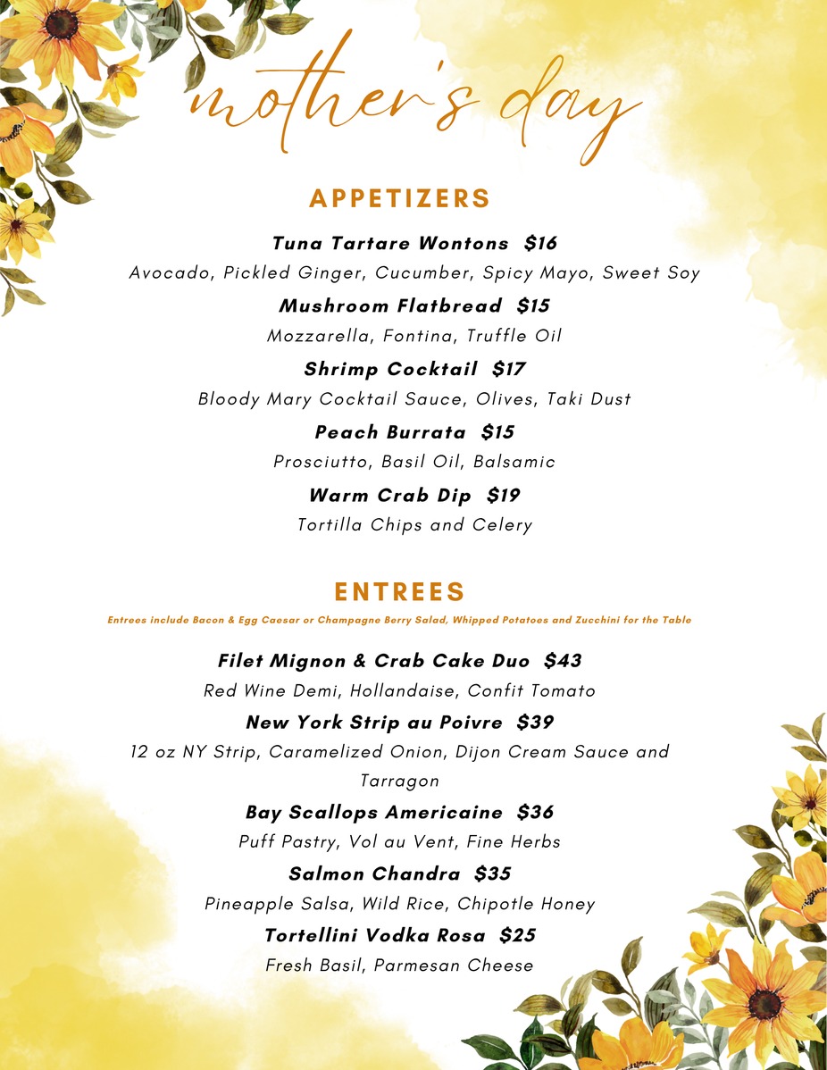 Join us on Mother's Day and treat your mom to a delicious meal!